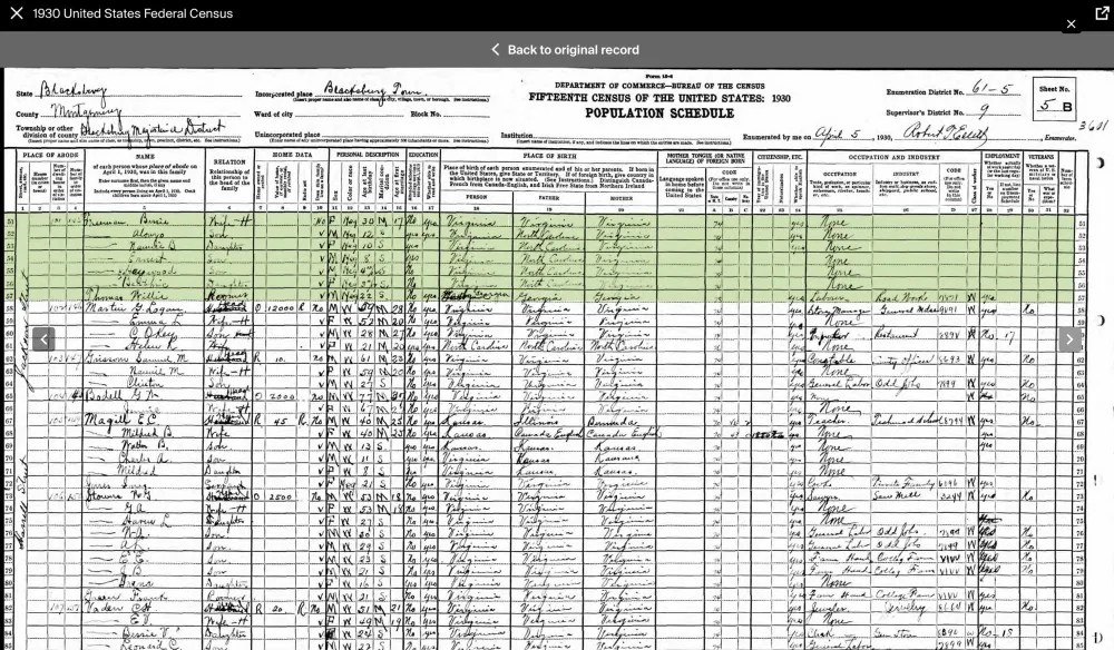 By the 1910 Census, Nancy Sweeney Briggs had married Harvey (Harry) Muse of Cambria, a laborer at the lime kiln. Together, they had four children: Willie B. (b. 1902), Grace (b. 1904), Connie (b. 1906), and Edward (1909–1950). Edward Muse later married Bessie Lynch (b. 1911), and they settled in New Town, where they raised five children: Jean (b. 1932), Constance (b. 1934), Shirley Ann (b. 1936), Edward Jr. (b. 1938), and Harold A. (b. circa 1940). By 1940, Edward Muse was working at the Virginia Polytechnic Institute Monogram Presser Plant alongside his neighbor, John Green, and Alonzo Freeman Sr.